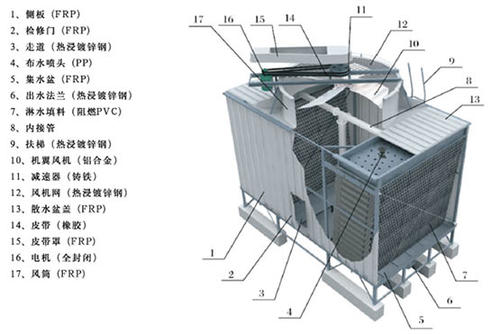 产品配置:方形横流冷却塔系列冷却塔另配有可供用户选择的塔体底部安装避震和避震器,塔体顶部可安装安全护栏、爬梯护圈、内部配管等装置,方便现场维修和管理。